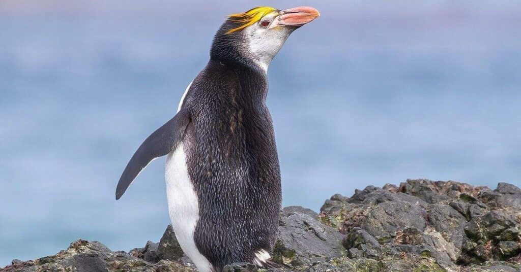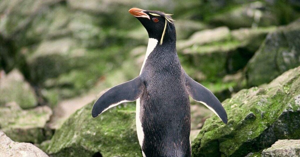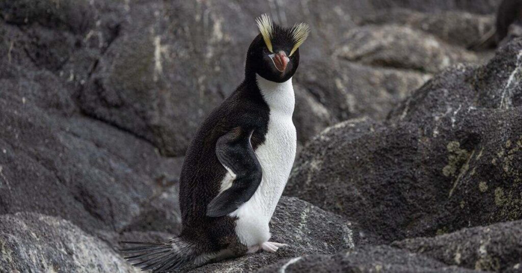 Erect-crested Penguins are large and have long, yellow crests that stand up on their heads. They live on rocky sub-Antarctic islands like the Bounty and Antipodes Islands. These penguins form large, noisy colonies and often nest in groups on cliffs and rocky slopes.