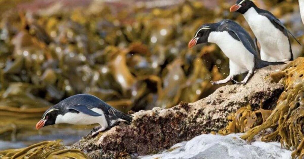 Rockhopper Penguins are small and full of energy. They are known for their bright yellow eyebrows and spiky head feathers. These penguins live on rocky islands in the Southern Ocean. They move by hopping from rock to rock, which is how they got their name.