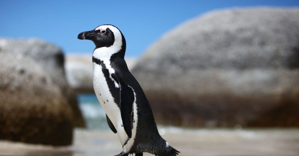 African Penguins live on the southern coasts of Africa. They have black and white bodies with a unique pattern of spots on their chest. These penguins are also called “jackass penguins” because of their loud braying call. They nest in burrows or under rocks to stay safe.