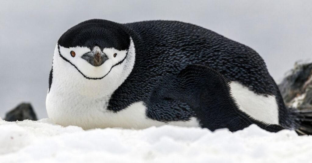 Chinstrap Penguins are easy to spot because of the thin black line under their chin. This line looks like a helmet strap, which is how they got their name. They live on rocky islands in the Southern Ocean and form large, noisy colonies. These penguins are energetic and move quickly across land.