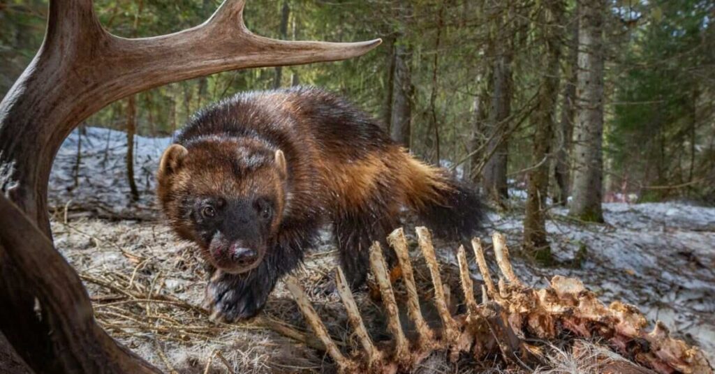 The wolverine is a strong and fearless animal found in northern Europe. It lives in cold forests and mountain regions. This animal has thick fur and sharp claws. Wolverines eat small animals, birds, and leftover food from other predators. They are mostly active at night and prefer to live alone.