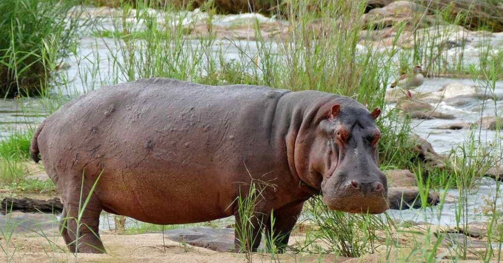 Hippos spend most of their time in water. They graze on land at night. Hippos shape riverbanks and create paths for smaller animals.