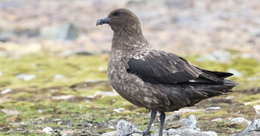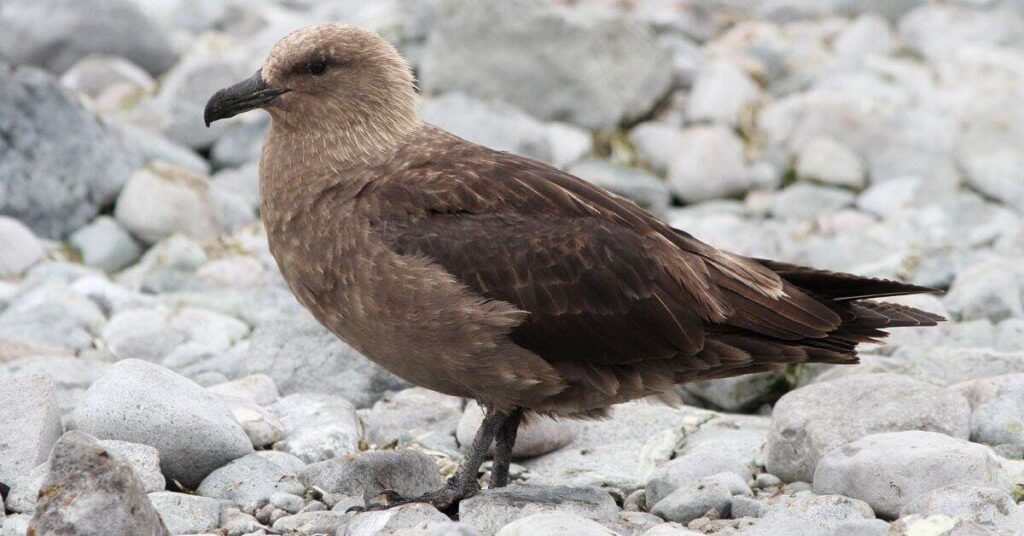 The South Polar skua is a strong and aggressive seabird. It lives in the cold regions of Antarctica. This bird has brown feathers and a sharp, hooked beak. It often flies low over the ocean and land. The South Polar skua nests on open ground near rocks. During breeding season, it fiercely protects its eggs and chicks.