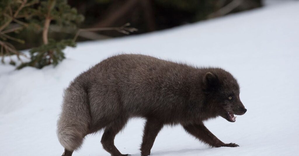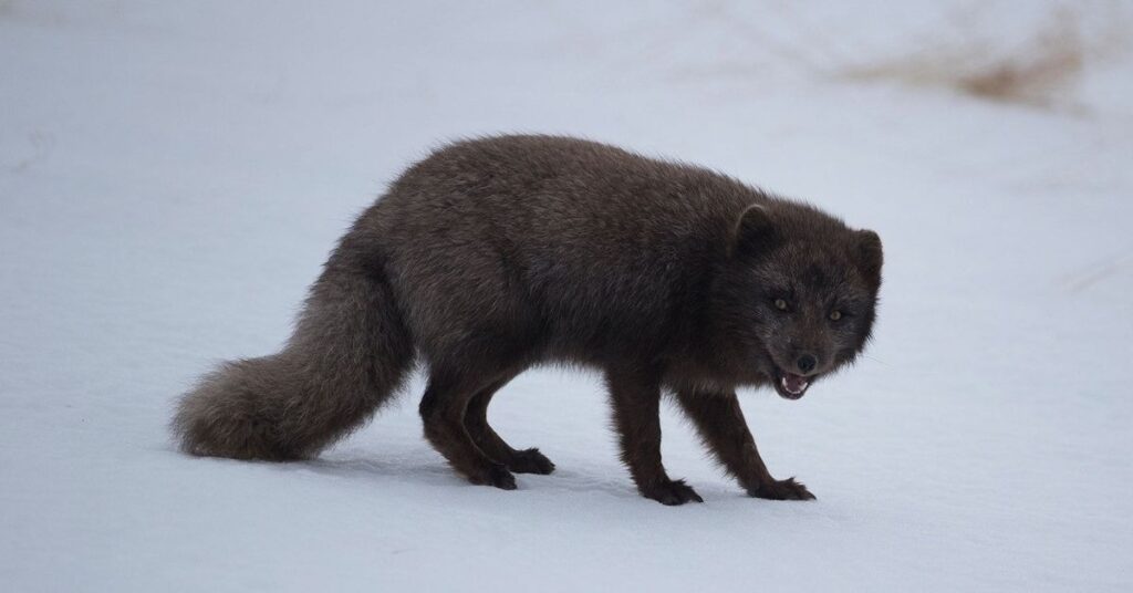 There are two color types among foxes in Iceland. The white morph changes color between seasons. The blue morph stays darker all year. The blue morph is common along the coast.