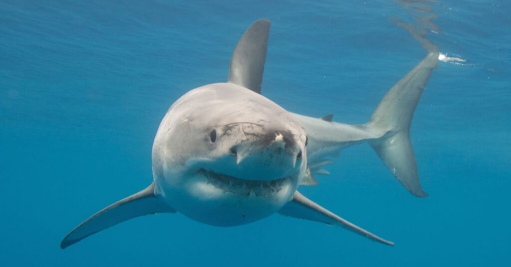 Great white sharks are famous for swimming near the ocean surface. Many people see them close to beaches and boats. This creates the idea that they live only in shallow water. In reality, great white sharks are strong deep divers. They move up and down through the ocean every day. Most of the time, they swim in surface waters where seals and fish are easy to find.
