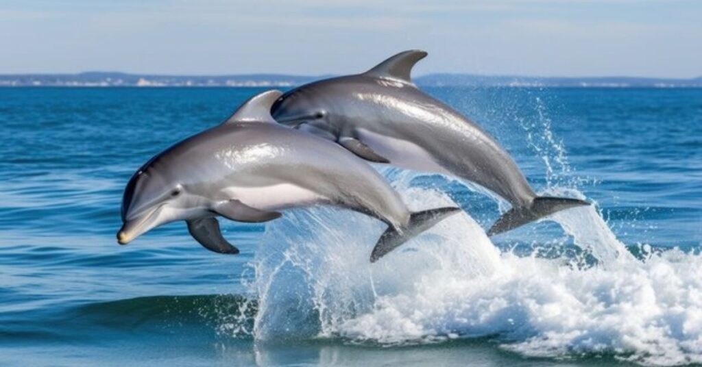 Dolphins are smart marine animals that live in oceans and seas around the world. They are known for their playful behavior and friendly nature. Dolphins use sounds such as clicks and whistles to communicate with each other. They also use echolocation to find food and move through the water. This ability helps them locate fish even in dark or deep water.