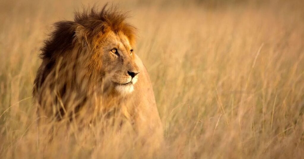 The lion is one of the most powerful wild animals in the world. It is known as the king of the jungle, even though it mostly lives in grasslands and savannas. Lions have strong bodies, sharp teeth, and loud roars that can be heard from far away. Male lions have thick manes around their heads, which make them look bigger and more impressive. They usually live in groups called prides.