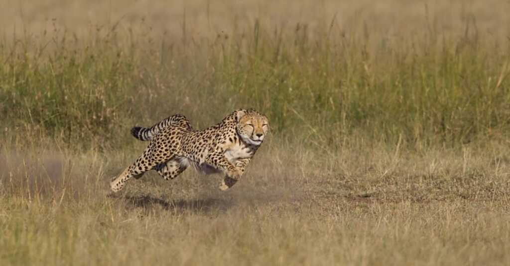 The cheetah is the fastest land animal in the world. It has a slim body, long legs, and a small head. Its coat is yellow with black spots that help it hide in tall grass. Cheetahs can reach very high speeds in short bursts, which helps them catch prey quickly. They mostly hunt during the day to avoid larger predators.